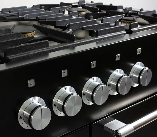 Built in the UK from the ground up, at our factory in Leamington Spa, this range cooker uses the highest quality components and integrates sleek details, like Hi-Fi style controls and a stylish chrome handrail.