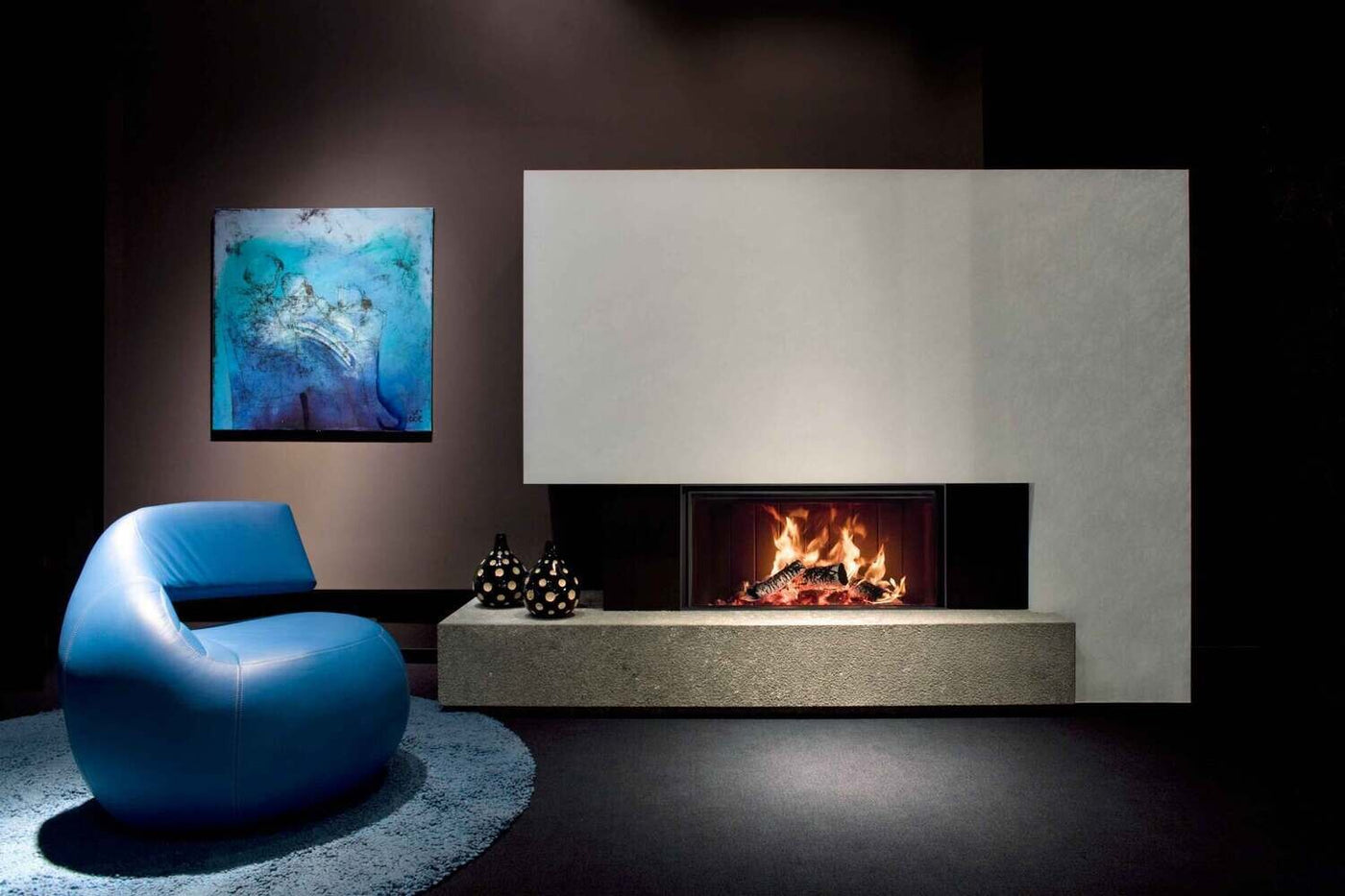 Seamlessly closed fires providing high efficiency figures and controllable heat output.